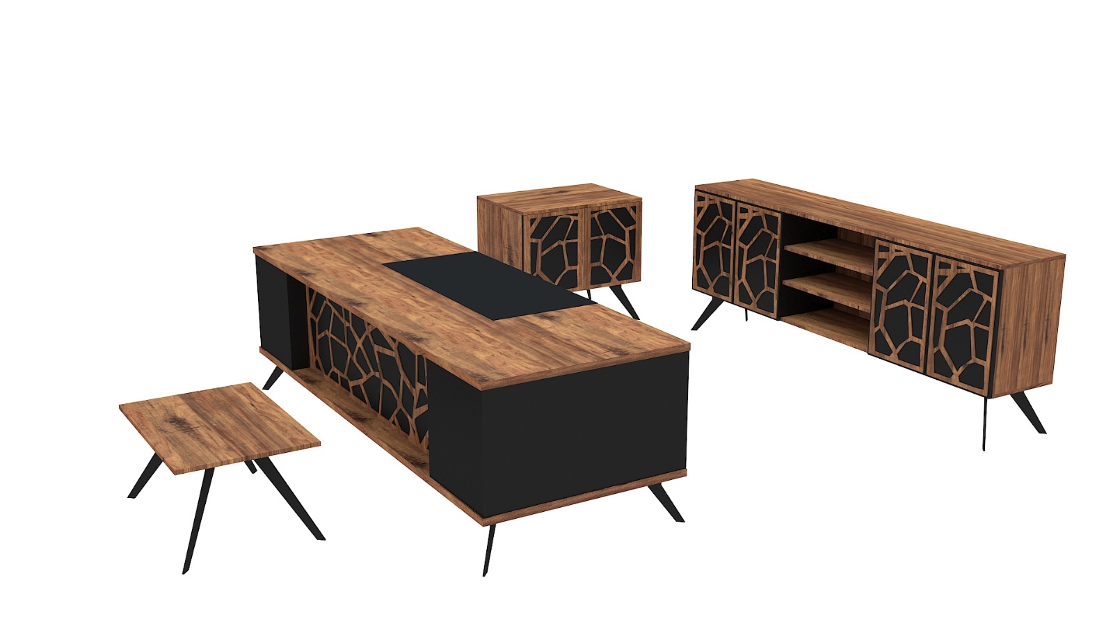 Цена на сайте указана за комплект: стол руководителя, тумба подкатная, гардероб, шкаф со стеклом.