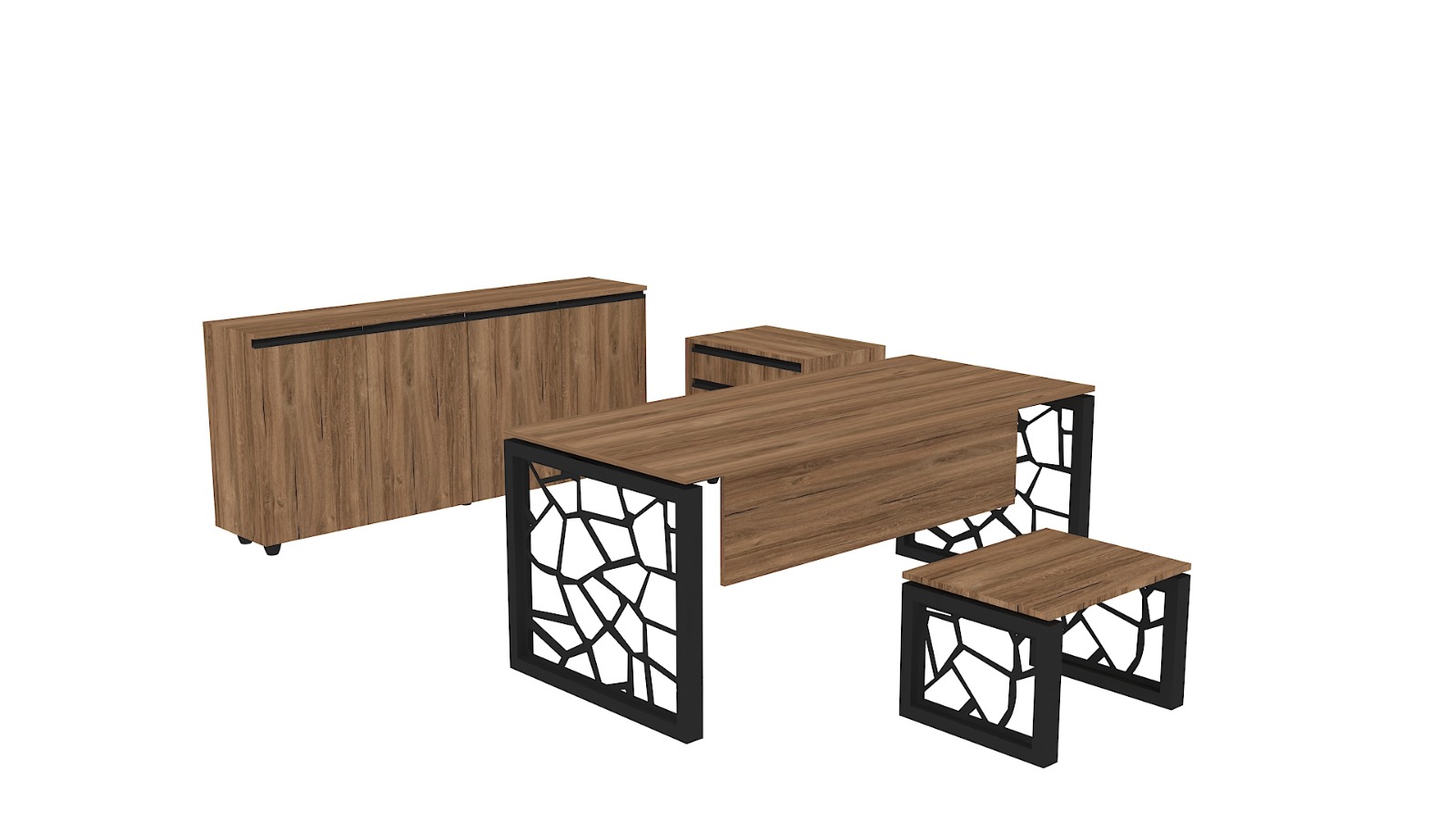 Цена на сайте указана за комплект : стол руководителя, тумба подкатная, гардероб, шкаф со стеклом.