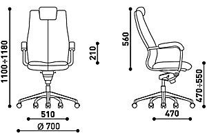 -Подлокотники, обитые кожей, регулируются по высоте и в продольной плоскости (модификация synchro steel chrome).
