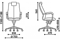-Полированная алюминиевая база снабжена самотормозящимися роликами. На нерабочих поверхностях допускается использование искусственной кожи.
