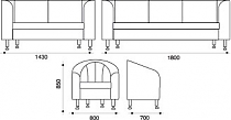 800х700х850 (кресло) 1430х700х850 (2-х местный диван) 1800х700х850 (3-х местный диван) |