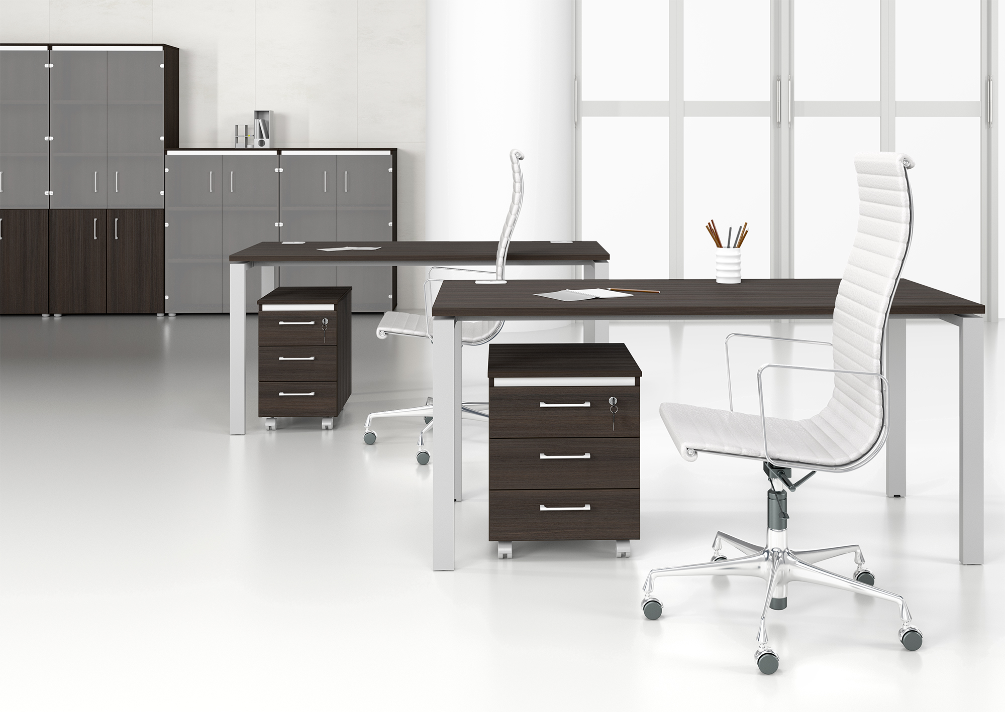 Металлокаркас представляют собой разборную, легко собираемую конструкцию, состоящую из опор и соединителей, стянутых между собой крепежными узлами. Опоры оборудованы регулировочными ножками, с возможностью регулировки по высоте. Металлокаркасы изготавливаются сечением 60х30, или 40х40, толщина трубы 2мм и окрашены порошковой краской в белый или серый цвет. В столешнице установлены два кабель-канала и лоток сетчатый для проводов. Все соединительные элементы оснащены фурнитурой для многократной сборки и разборки изделия. |